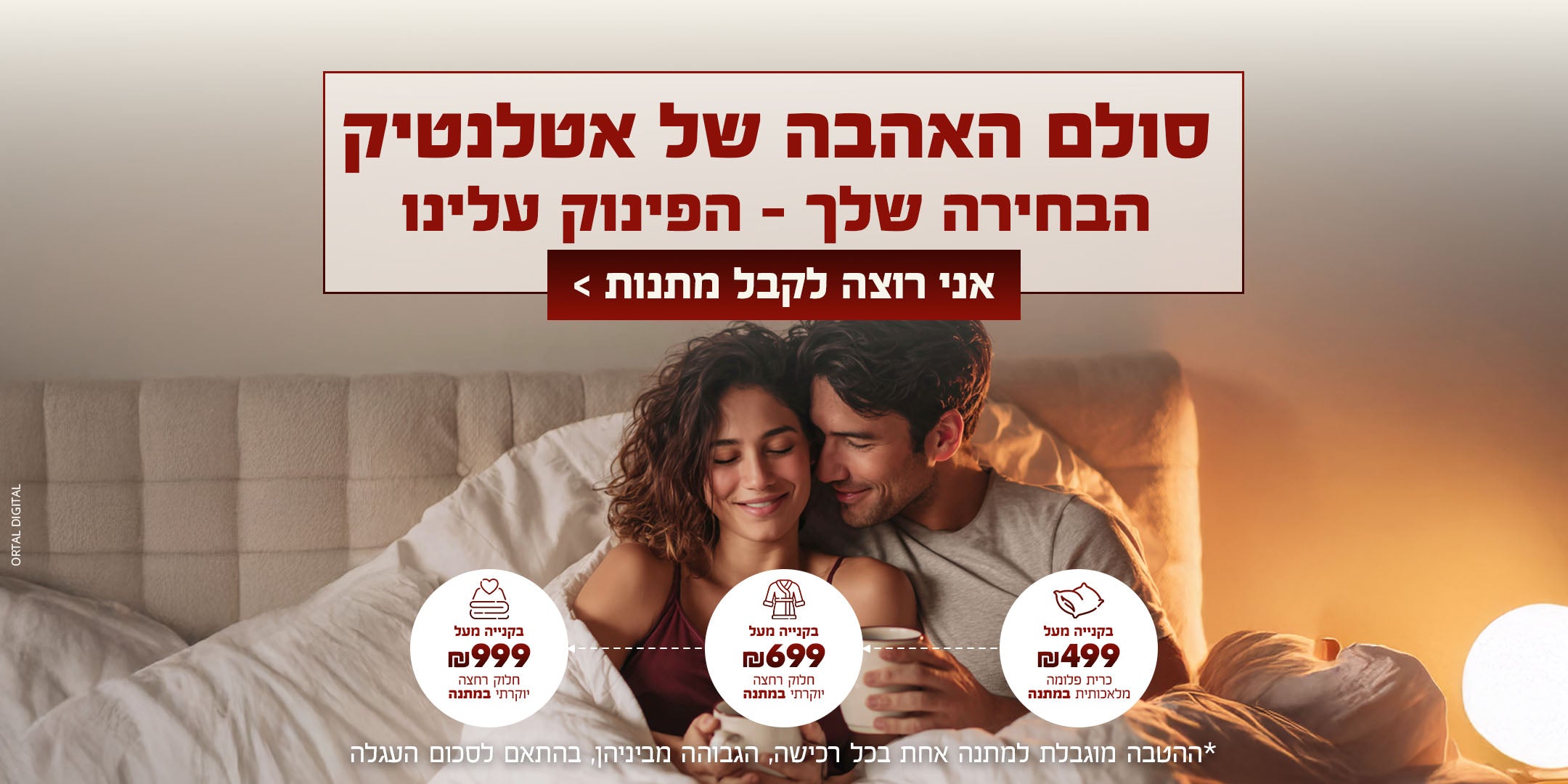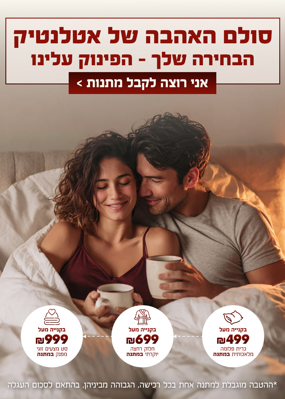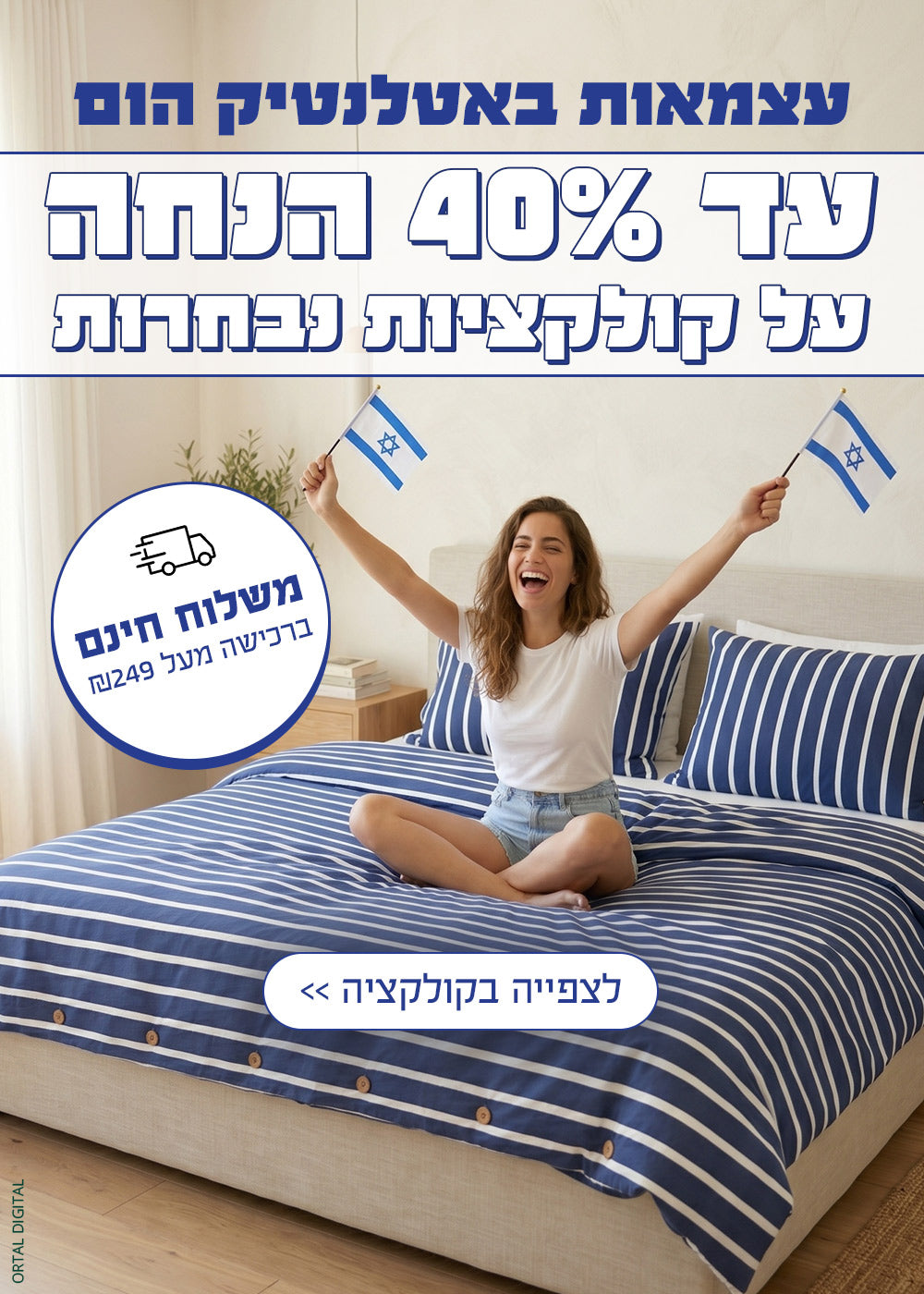 אטלנטיק הום היא חברה משפחתית שהוקמה לפני 50 שנה ומאז, לאורך שלושה דורות, היא מפתחת, מייצרת ומספקת מצעים, שמיכות, מגבות וחלוקים למעל ל-200 בתי מלון ומוסדות בארץ ובעולם.